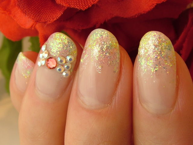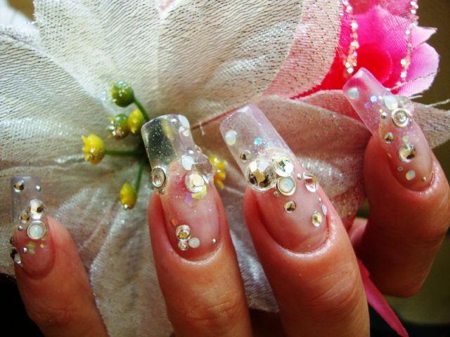 クリスタルとホワイトオパールのストーンでとっても涼しげなスカルプになりました![]()